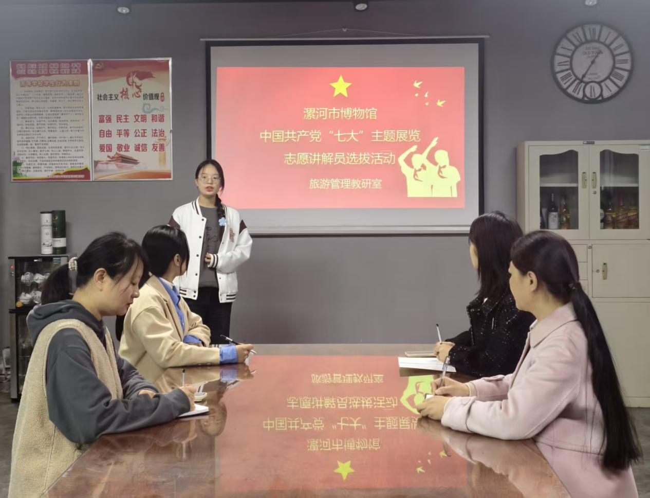 5月15日,在中国共产党成立104周年之际,由延安革命纪念地管理局,中共漯河市委直属机关工作委员会,漯河市文化广电和旅游局主办的“团结的大会,胜利的大会”中国共产党第七次全国代表大会专题展开幕式在漯河市博物馆举行,现场几位精神饱满的青年志愿者格外引人注目 彩神v8,他们是来自彩神8争霸2023级旅游管理专业的8名彩神平台,作为讲解志愿者代表参与了此次活动,并将在未来三个月内承担该展的日常讲解工作,这一实践活动既是院校与文化机构的深度合作,也为旅游专业彩神平台搭建了“以知促行,以行践知”的宝贵平台。