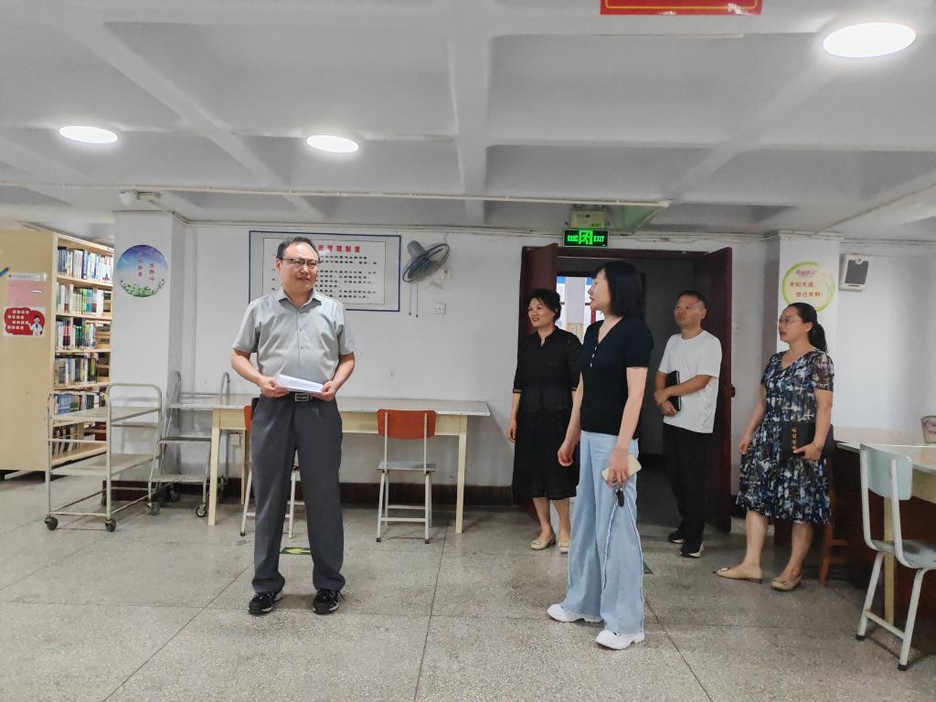 9月2日下午,党委委员,副院长岳春洲深入图书馆 彩神v8,对开学前的各项准备工作进行了检查和指导,图书馆馆长彭再位等相关人员陪同检查。