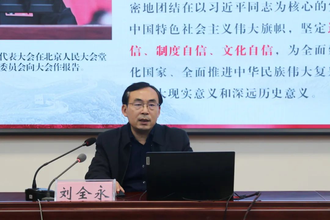 刘全永结合自身的彩神下载体会,围绕党的二十大报告确定的重要思想,重要观点,重大战略,重大举措,从坚决同以习近平同志为核心的党中央保持高度一致,坚定实现中华民族伟大复兴中国梦的信心和决心,积极投身全面建设社会主义现代化国家火热实践等3个方面,以丰富的案例,生动的语言 彩神v8,对党的二十大精神进行了系统全面,生动精彩的解读和阐释。