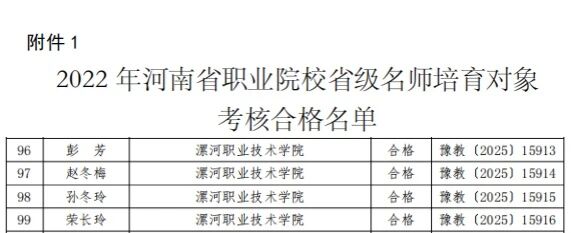 根据《河南省教育厅河南省人力资源和社会保障厅关于开展2022年河南省职业院校省级名师和省级骨干教师培育期满考核工作的通知》(教职成函〔2024〕418号)要求,彩神8争霸高度重视并认真组织考核工作,经彩神IIV登录首页自主考核,以及省教育厅,省人力资源社会保障厅专家综合评审和结果公示,共有4名教师获评省级名师,13名教师获评省级骨干教师 彩神v8。