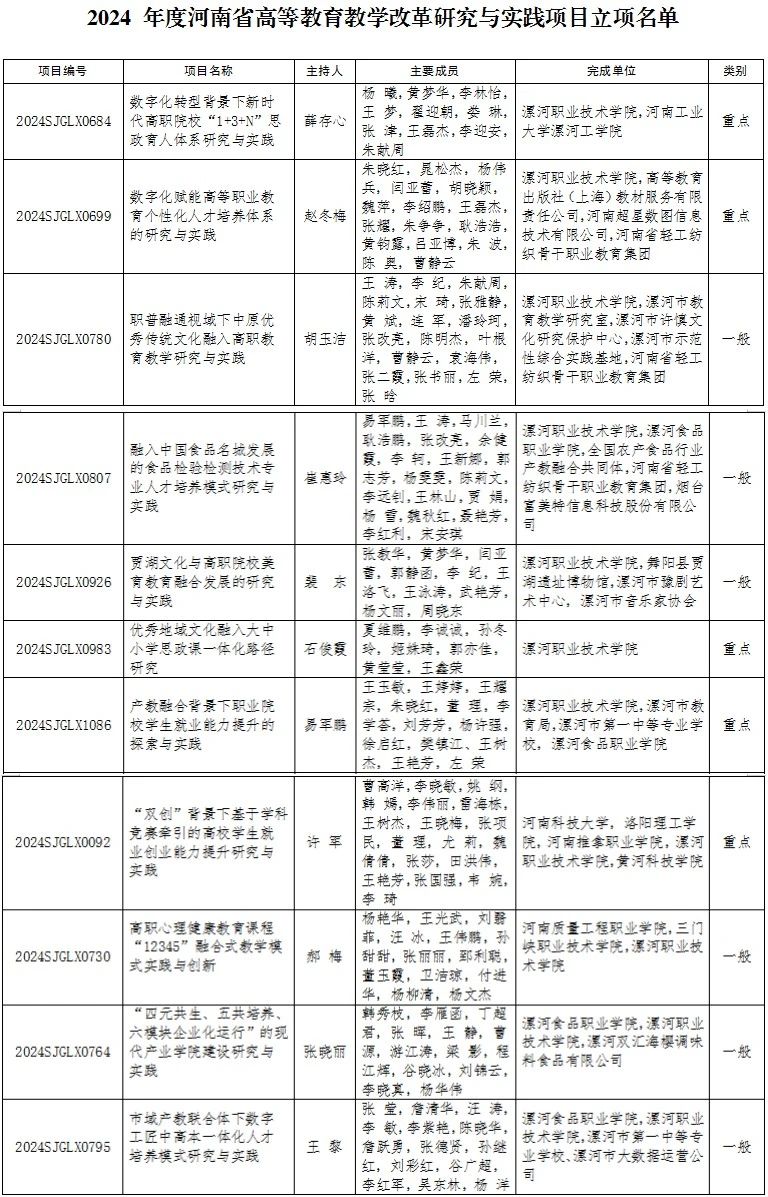近日 彩神v8,河南省教育厅办公室发布了《关于公布2024年度河南省高等教育彩神app改革研究与实践立项项目的通知》(教高〔2024〕146号),彩神8争霸11个项目获批立项,其中主持7项(高等职业教育类5项,高校就业创业类1项,思政课类1项),参与4项。